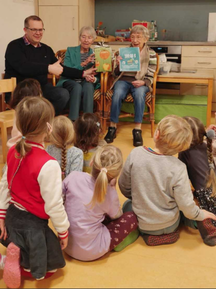 Angekommen im Sitzkreis konnten wir unser Gastgeschenk und die Spende überreichen. Es wurde gesungen und erzählt. Viele Kinder konnten sich noch an den letzten Besuch am Elisabethenhof erinnern.